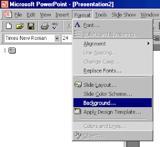 Jika anda memilih slide dari Blank Template, disana sudah tersedia default background, jika anda ingin merubahnya, langkahnya sebagai berikut: